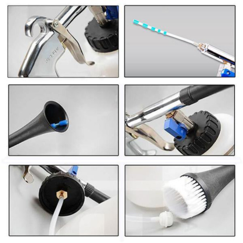 Acest aparat de curățat cu presiune permite o curățare rapidă și eficientă a interiorului și exteriorului vehiculului. Duza sa conică asociată cu o acțiune rotativă vizează murdăria încrustată. Compatibil cu orice compresor de aer, ajunge cu ușurință în zonele greu accesibile.